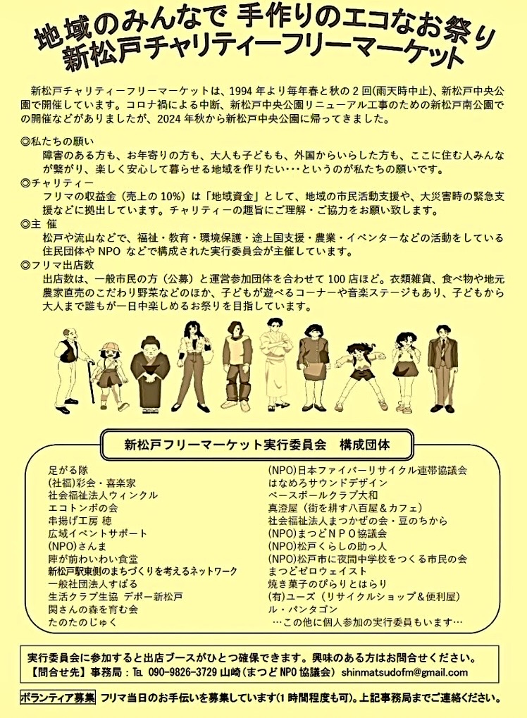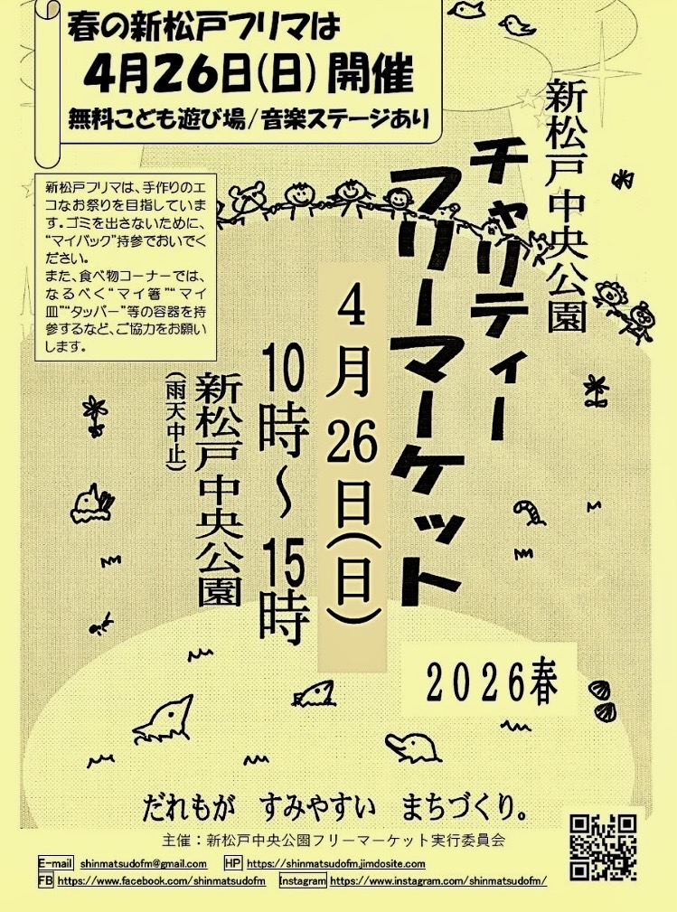4月26日に新松戸中央公園で開催される「チャリティーフリーマーケット」にゆとにこも出展します。
